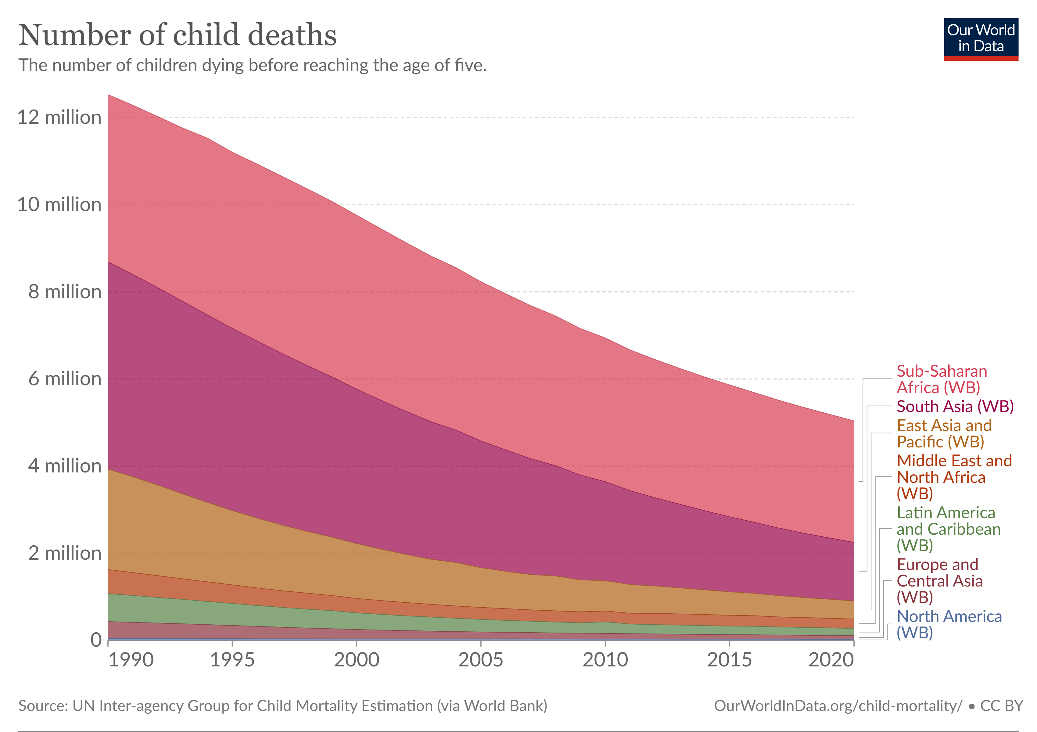 Since 1950, global life expectancy has risen from 46.5 years to 71 years (COVID-19 appears to have caused the largest downtick in over 60 years), while child and infant mortality are lower than ever. In 1950, there was a 27 percent chance that a child would not reach puberty — a proportion that fell to just over 4 percent by 2020. In 1990, almost 13 million children were still dying before the age of five each year, but this number has steadily fallen to just over 5 million (despite global population growth). Maternal mortality has plunged as well.